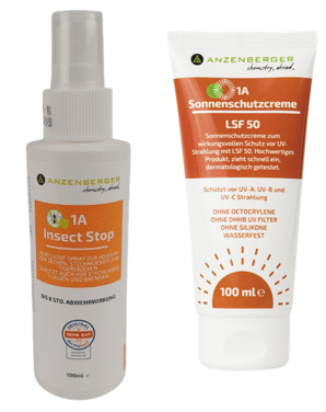 Mit unserer 1A Sonnenschutzcreme und dem kraftvollen Insect Stop sind Sie bestens gewappnet für Arbeiten und Aktivitäten im Freien. Hochwirksamer UV-Schutz trifft auf zuverlässige Abwehr gegen Mücken, Zecken & Co.