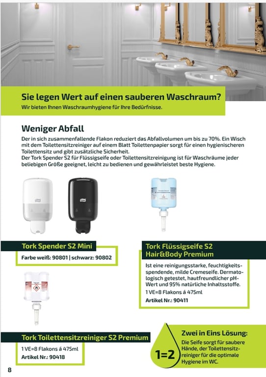 Ein System für den gesamten Waschraum und WC Anlagen. Effiziente und effektive Hygienelösungen für Ihre Bedürfnisse und die wirkungsvolle Pflege